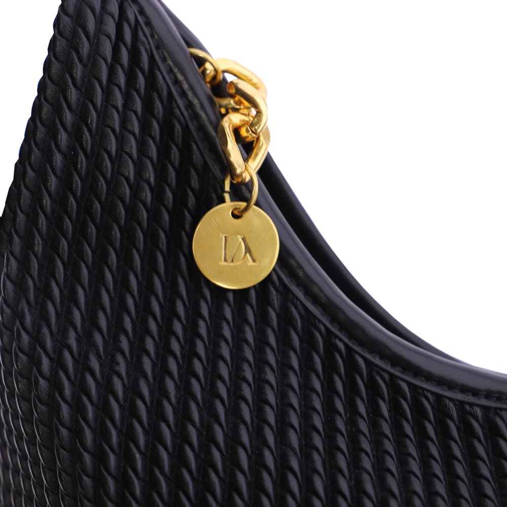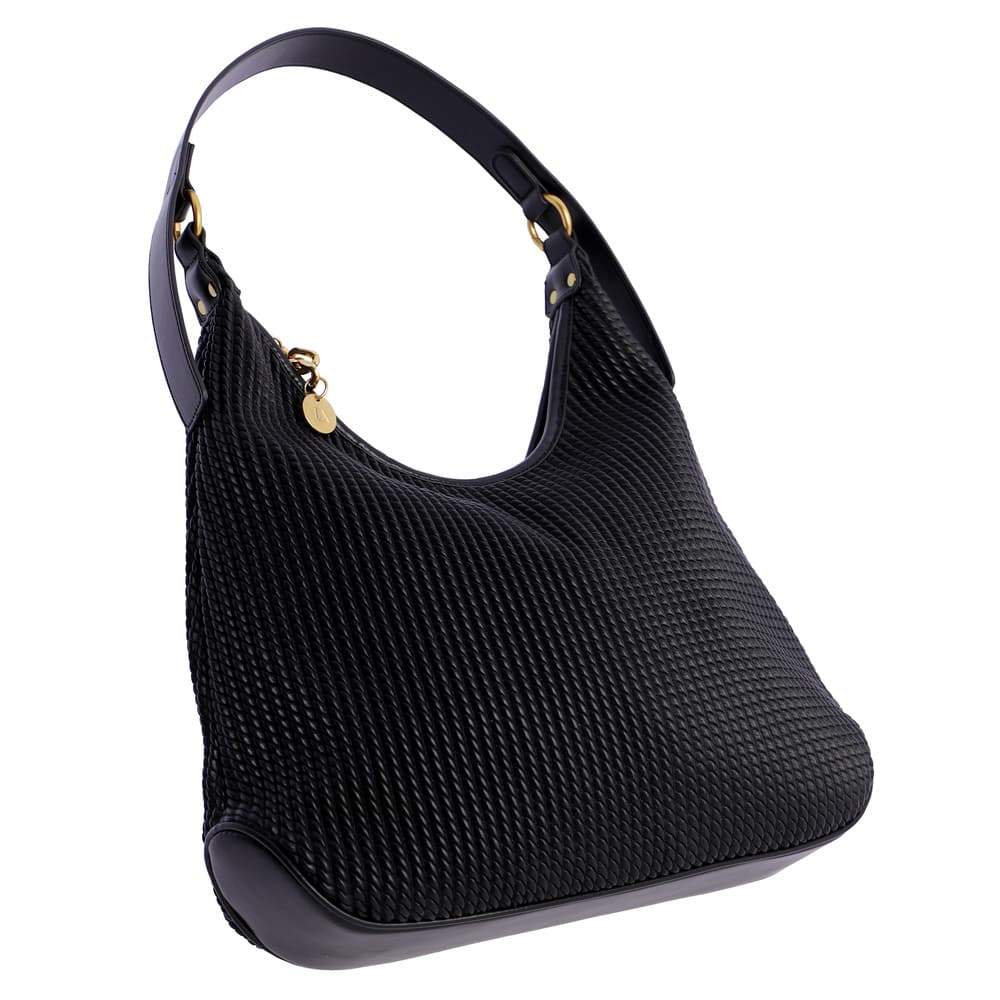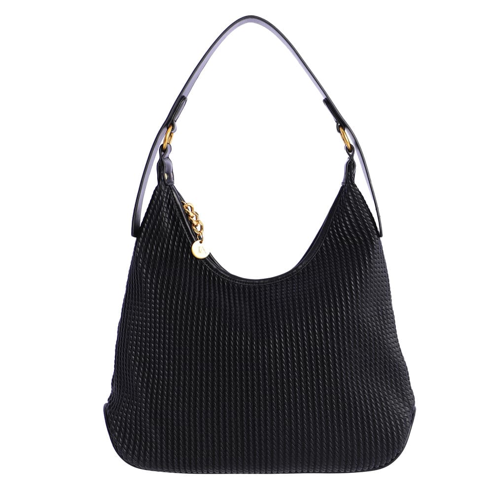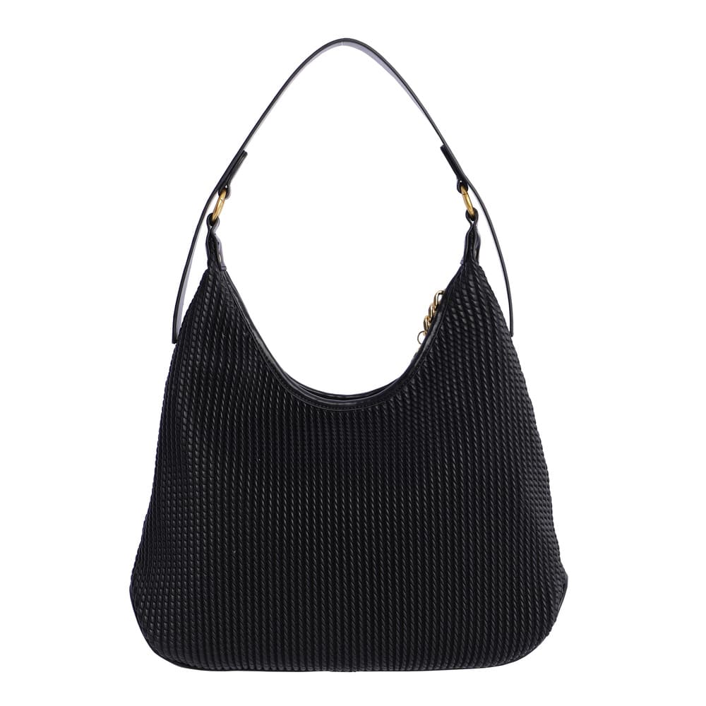 Bolso de Hombro Negro Don Algodón, es elegante, versátil y con textura única. El Bolso de Hombro Negro Don Algodón destaca por su diseño acanalado en relieve y su tacto blando, que lo hacen moderno y cómodo a la vez. Un básico renovado que se adapta a tu estilo diario. Cierre con cremallera superior y detalles metálicos dorados que aportan un toque chic. Medidas: 37 x 8 x 24cm.