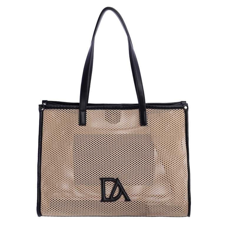 Bolso Shopper Rejilla Don Algodón, es un bolso amplio, fresco y muy funcional, perfecto para el día a día, especialmente en temporadas cálidas. Su diseño combina la estética natural de la rejilla tipo rafia con detalles característicos de la marca, logrando un estilo casual, mediterráneo y muy combinable. Diseño y Estilo Cuerpo principal en rejilla trenzada o efecto malla, que aporta ligereza y un look veraniego. Detalles en material sintético o polipiel en tonos negros. Logo Don Algodón visible en el centro. Estética natural y urbana, ideal para looks casuales, playeros o de paseo.