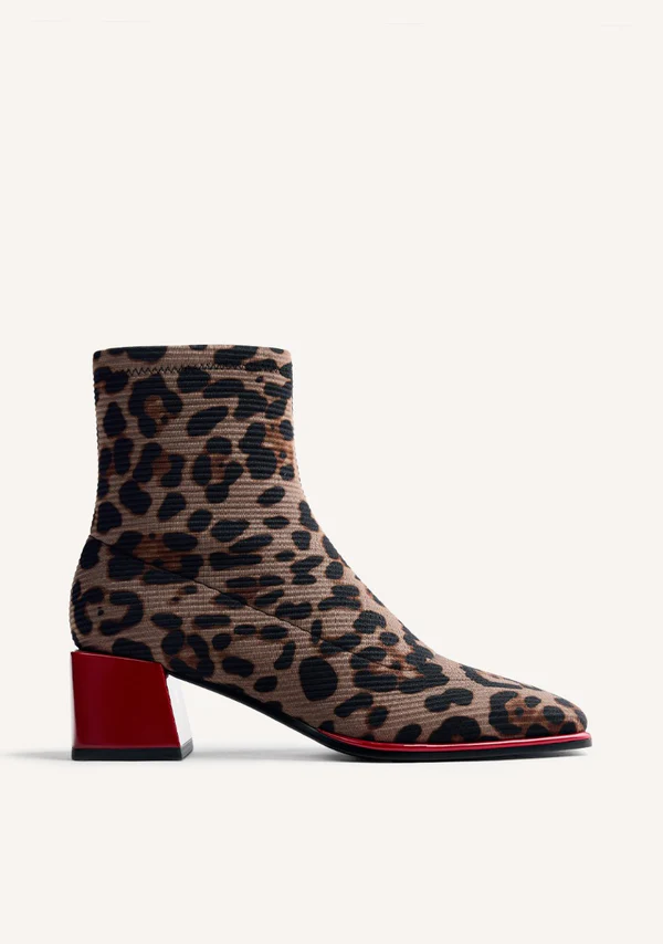 Botines Elasticos Estampado Animal Inger, botines con estampado animal y caña tipo calcetín. Tacón acharolado tipo bloque y cerco en contraste. Los Botines Elasticos Estampado Animal Inger cuentan con plantilla acolchada y cremallera en el lateral interno de la caña. Punta cuadrada. Altura tacón: 5 cm. Este modelo destaca por su suavidad y elasticidad. Seguimos la guía estándar de anchos de caña, ajustando la medida según la talla. Los zapatos no se deben meter en la lavadora, salvo que la etiqueta indique lo contrario. Algunos materiales pueden desteñir o deteriorarse después del lavado. Para la correcta limpieza, recomendamos usar un paño ligeramente húmedo o una toallita higiénica. En cualquier caso, es aconsejable probarlo en una zona poco visible antes de aplicar sobre toda la superficie, ya que determinados colores vivos pueden desteñir y transferirse a otros más claros. Una vez limpios, déjalos secar al aire sin exponerlos a fuentes de calor directa.