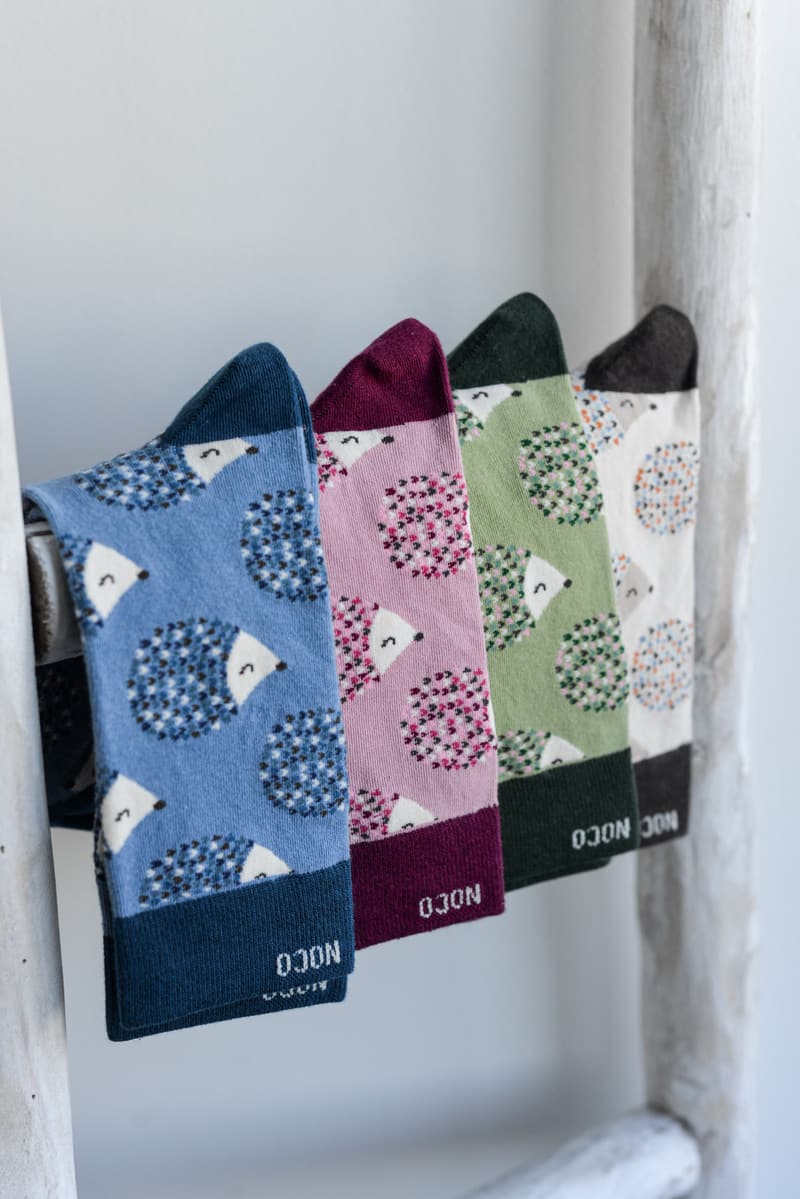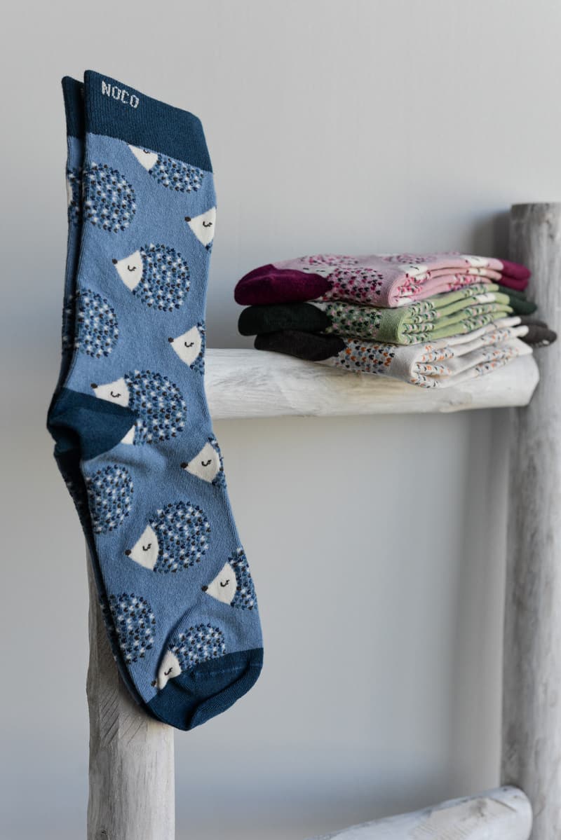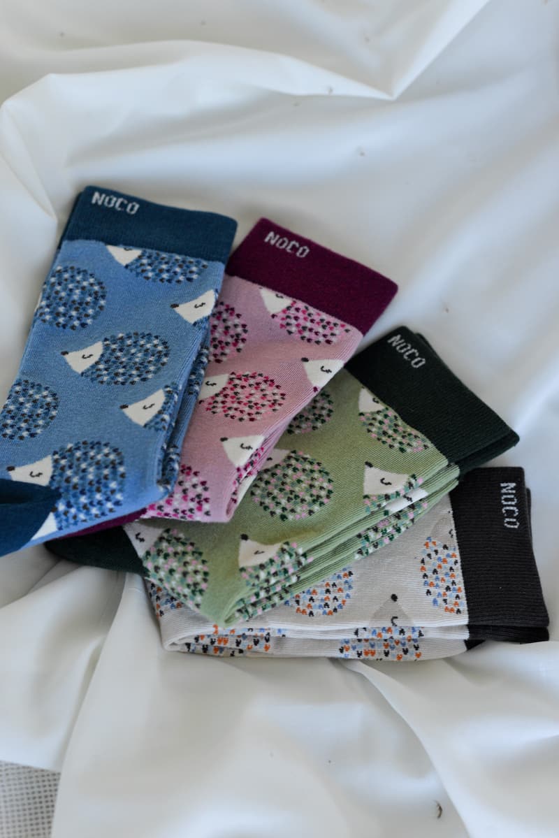 Calcetines Erizos Noco, Dale un paso adelante a tu look con los calcetines NOCO, diseñados para quienes buscan estilo sin renunciar al confort. Con estampados originales y detalles en color liso en la puntera, talón y goma superior, estos calcetines unisex combinan diseño moderno con funcionalidad. Estampado de mariposas. La goma superior, donde se encuentra el logo de la marca NOCO, ofrece un ajuste cómodo sin apretar. Su confección sin costuras evita roces e incomodidades, mientras que el tejido antibacteriano mantiene tus pies frescos y protegidos durante todo el día. Talla única: Aprox. 36–43 Tejido antibacteriano.