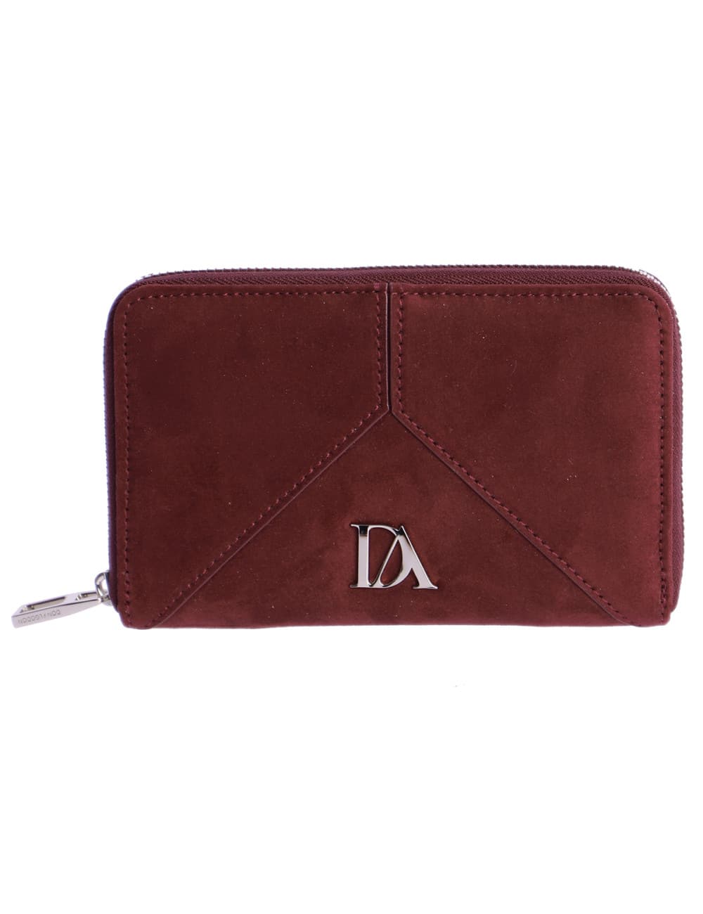 Cartera Grande Ante Burdeos Don Algodón, de antelina y logo en la parte frontal. Tiene cierre de cremallera con tirador metálico con logo, dispone de muchas ranuras para tarjetas y monedero. Las medidas de la Cartera Grande Ante Burdeos Don Algodón: 17(ancho) x 3(fondo) x 11(alto)cm.