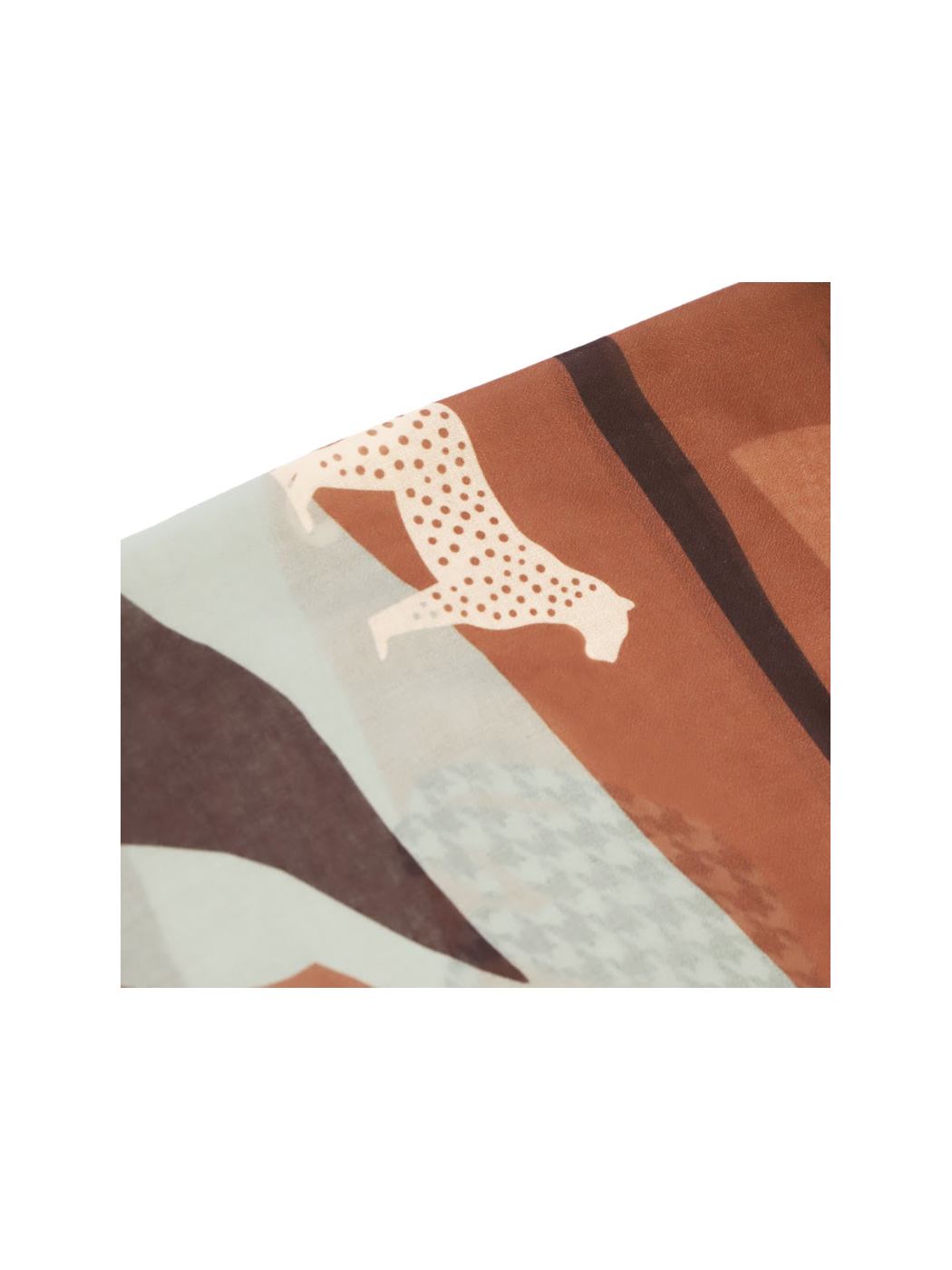 Pañuelo Don Algodón Selva, es un rectangular para mujer Don Algodón fabricado en poliéster, estampado con siluetas de leopardo a rayas , lunares sutiles y pata de gallo. Medidas: 180(ancho) x 80(alto)cm. El Pañuelo Don Algodón Selva es el complemento perfecto para que los puedas combinar en tu día a día, serán tus compañeros perfectos para viajes, trabajo, vacaciones, tiempo libre. Composición: 100% textil.