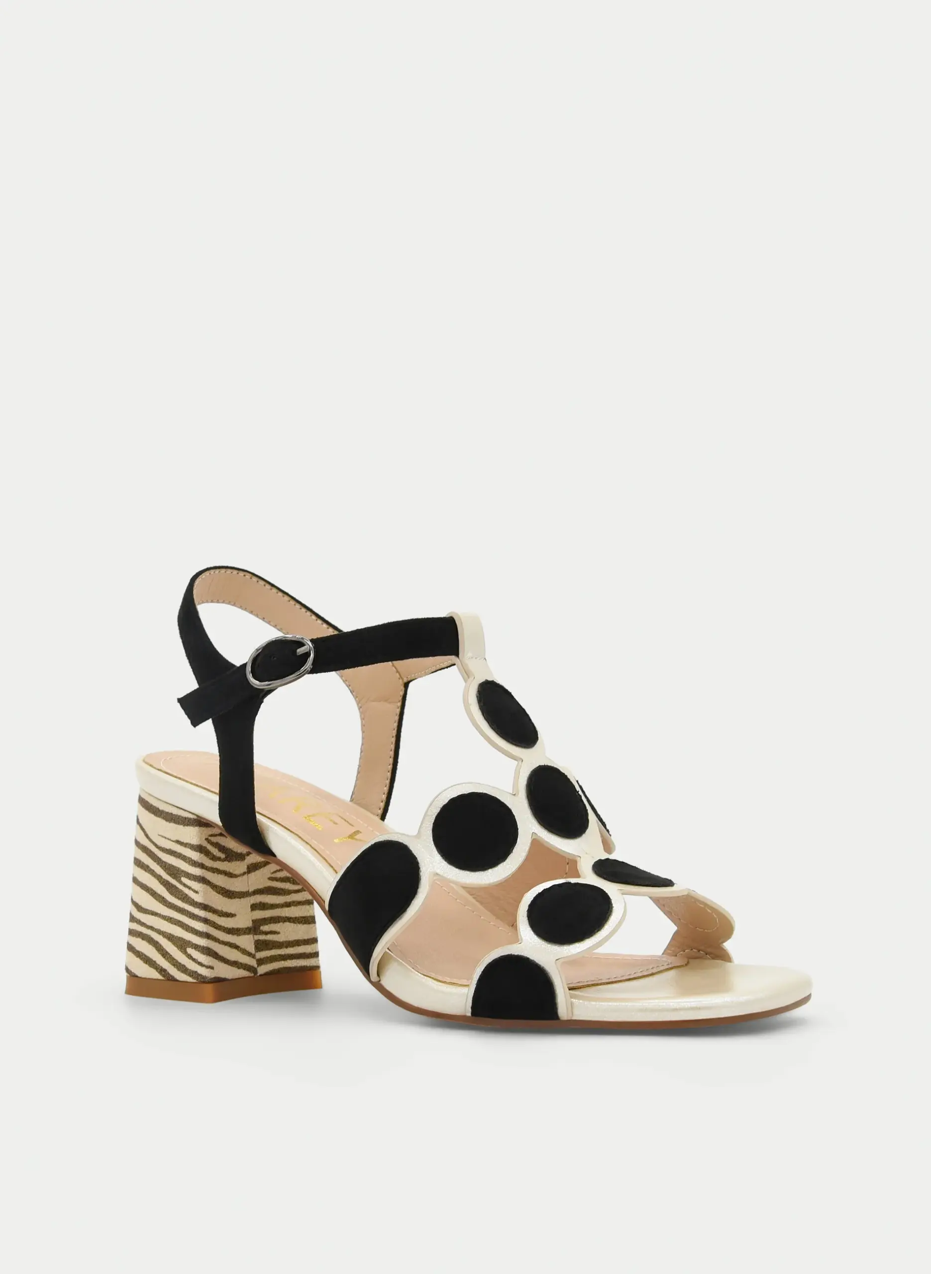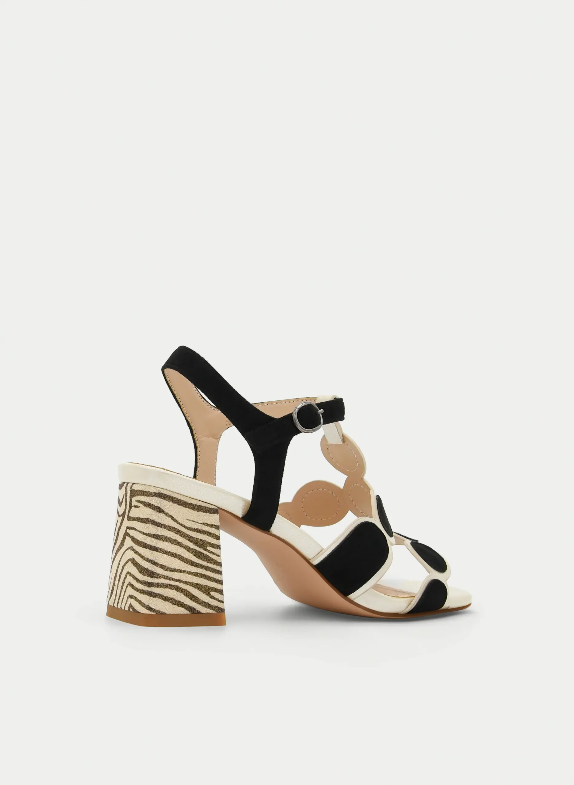 Sandalia Blanco y Negro tacón Animal Print Geométrica